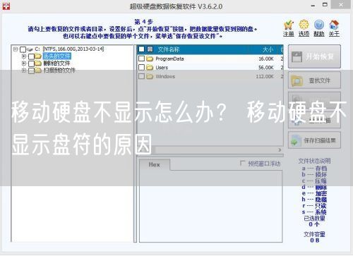 当移动硬盘无法访问时,里面的数据无法读取,最直接的后果就是数据丢失。遇到这种情况我们该怎么办?首先,分析移动硬盘不显示磁盘符号的原因,然后“对症下药”。